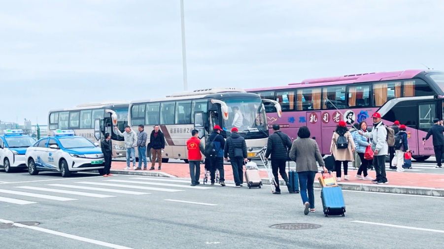在平潭金井国际邮轮中心,志愿者们身穿红马甲,与码头企业及其他志愿者一道,在码头联检中心协助维护秩序,耐心热情为旅客提供出行指引和咨询等服务,特别是做好重点旅客帮扶,为出入境旅客营造安全舒适的出行环境,获得游客高度肯定。