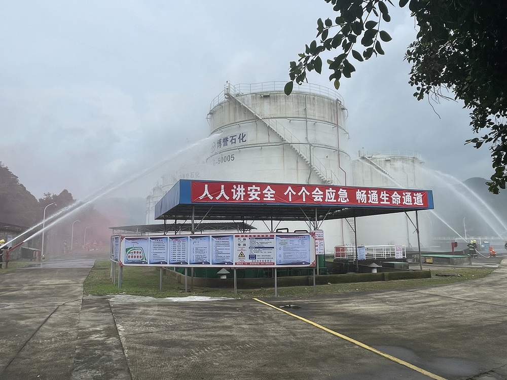 此次演练分为码头库区油罐火灾应急响应和污染物回收两个环节,模拟了库区5#汽油罐油管内汽油泄露遇静电引发火灾的应急响应、人员疏散、抢险灭火、运送物资、人员救护以及污染物回收处置等演练环节。在各参演单位紧密配合与团结协作下,演练行动历时40余分钟,顺利完成了油罐灭火处置、泄漏油品回收。此次演练检验了应急联防互助协议及相关应急预案的可操作性,完善了部门间协调联动,提升了区域化应急处置能力,有力保障了安全生产月期间福州港安全生产形势平稳。
