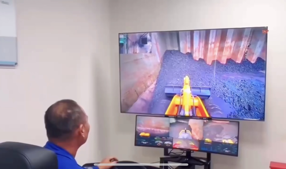 装载机无人清舱项目是通过“5G专网+远程操作”,把装载机驾驶室由20米深的船舱底转移至宽敞明亮的远控中心,消除了流动机械在清舱过程中的扬尘隐患,降低职业病和人员下舱作业安全风险,实现了清舱作业的“无噪无尘无干扰”。