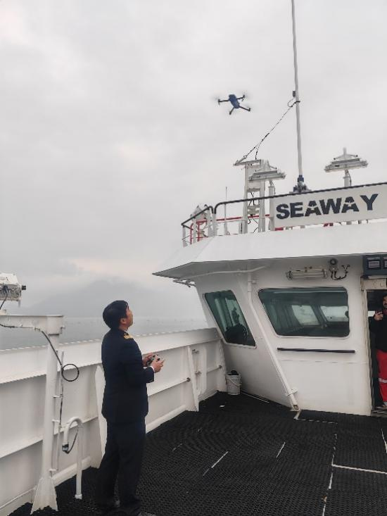 半潜船“SEAWAY SWAN”轮船长218米,型宽43米,本航次将装载4艘拖轮和一艘浮吊船出口非洲几内亚。此次抛锚装载点周围通航环境复杂、周边养殖设施密布,稍有疏忽,船舶就可能与渔网缠绕,进而引发安全事故。面对复杂的通航环境和高精度定点抛锚要求,福州港引航站创新使用无人机辅助引航,凭借其灵活、高效的特点,操纵无人机精准定位碍航物,为引航员预判及操纵提供实时高清影像数据,实现通航环境实时监测预警和引航作业协同,最终,引航团队成功引领“SEAWAY SWAN”轮在指定位置锚泊,圆满完成本次引航任务。