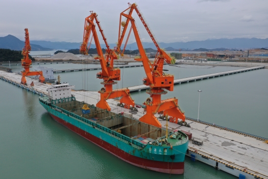 3月6日,集装箱船“鑫源永顺”停靠在福州港三都澳港区漳湾作业区18-20号泊位进行装卸作业,这是该泊位自投入运营以来首次开展集装箱业务。
