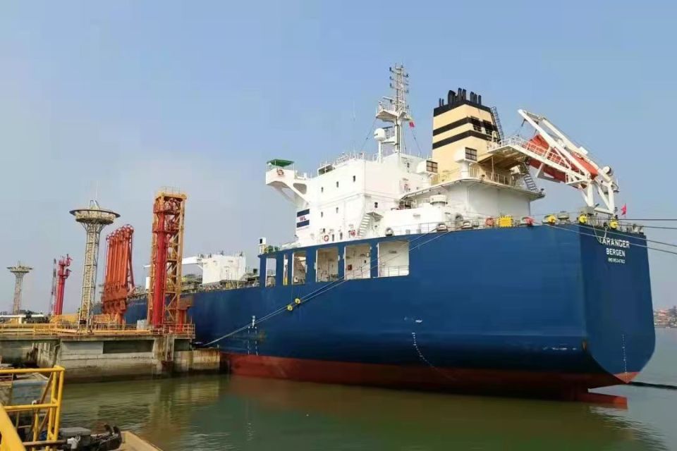 近日,首船中化泉州石化生产的5000吨苯乙烯从湄洲湾港外走马埭作业区19#泊位装载,运往肖厝振戎码头后顺利出口土耳其。这是中化泉州石化100万吨/年乙烯及炼油改扩建项目投产后首单出口海外的液体化工品,也是湄洲湾港苯乙烯产品的首次出口。