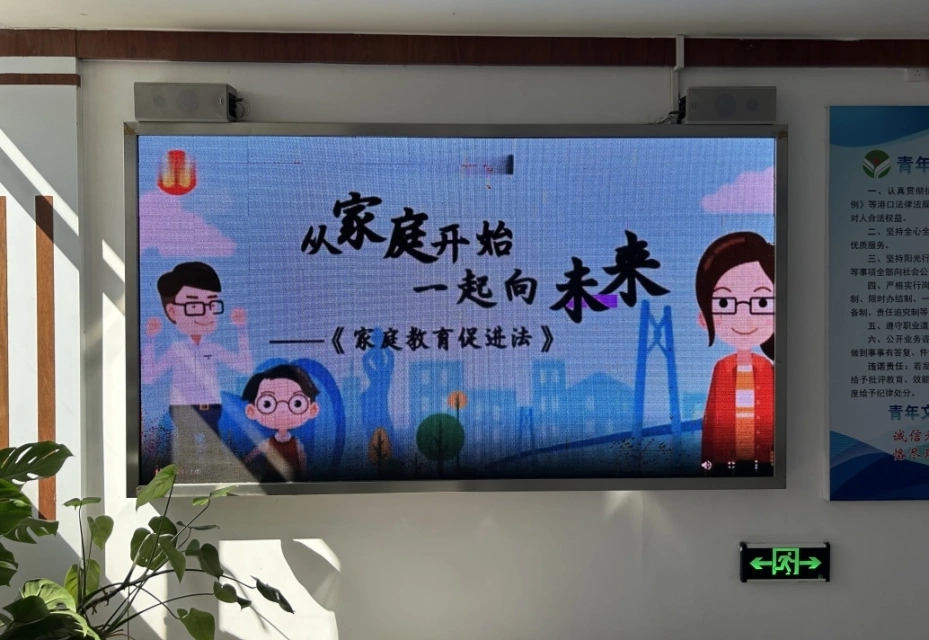在中心各办公点广泛开展家庭教育宣传周主题宣传,通过LED屏、工作群等播放全国妇联推出的《家国情·小家大爱》系列家庭宣传周短视频,以最美家庭、文明家庭的生动实践,激励广大职工家庭厚植家国情怀、传承优良家风,聚焦促进家庭和睦、家教良好、家风端正,凝聚推进港口高质量发展的家庭力量。
