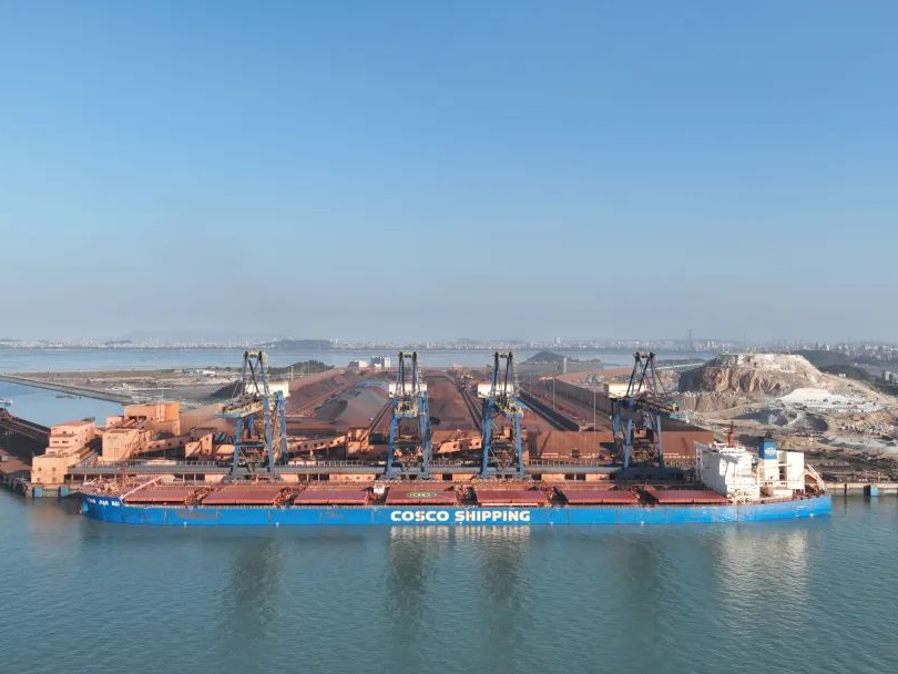 目前,东吴港区已与全球约二十多个国家地区内的四十多个港口实现货物往来通航。全力做好闽浙赣粤等区域能源、原材料保供保畅工作,深化拓展中西部省份腹地市场,全年“海进江”发运量达389万吨,同比增长10.24%。持续拓宽国际“朋友圈”,新增合作方矿石巨头FMG,全年通过东吴港区吞吐铁矿石495万吨;转口贸易大幅增长,出口约16万吨煤炭至日韩;出口铁矿石至东南亚235万吨,同比增长592.46%,创历史纪录。对台中转铁矿石366万吨,历年累计完成1800万吨以上,连续五年位居大陆对台中转铁矿石第一港口地位。全年完成散改集煤炭铁路运输55万吨,同比增长49.25%。全年接卸40万吨船舶12艘,同比增长9%;30万吨船舶14艘,同比增长40%,持续保持大型船舶接卸常态化。