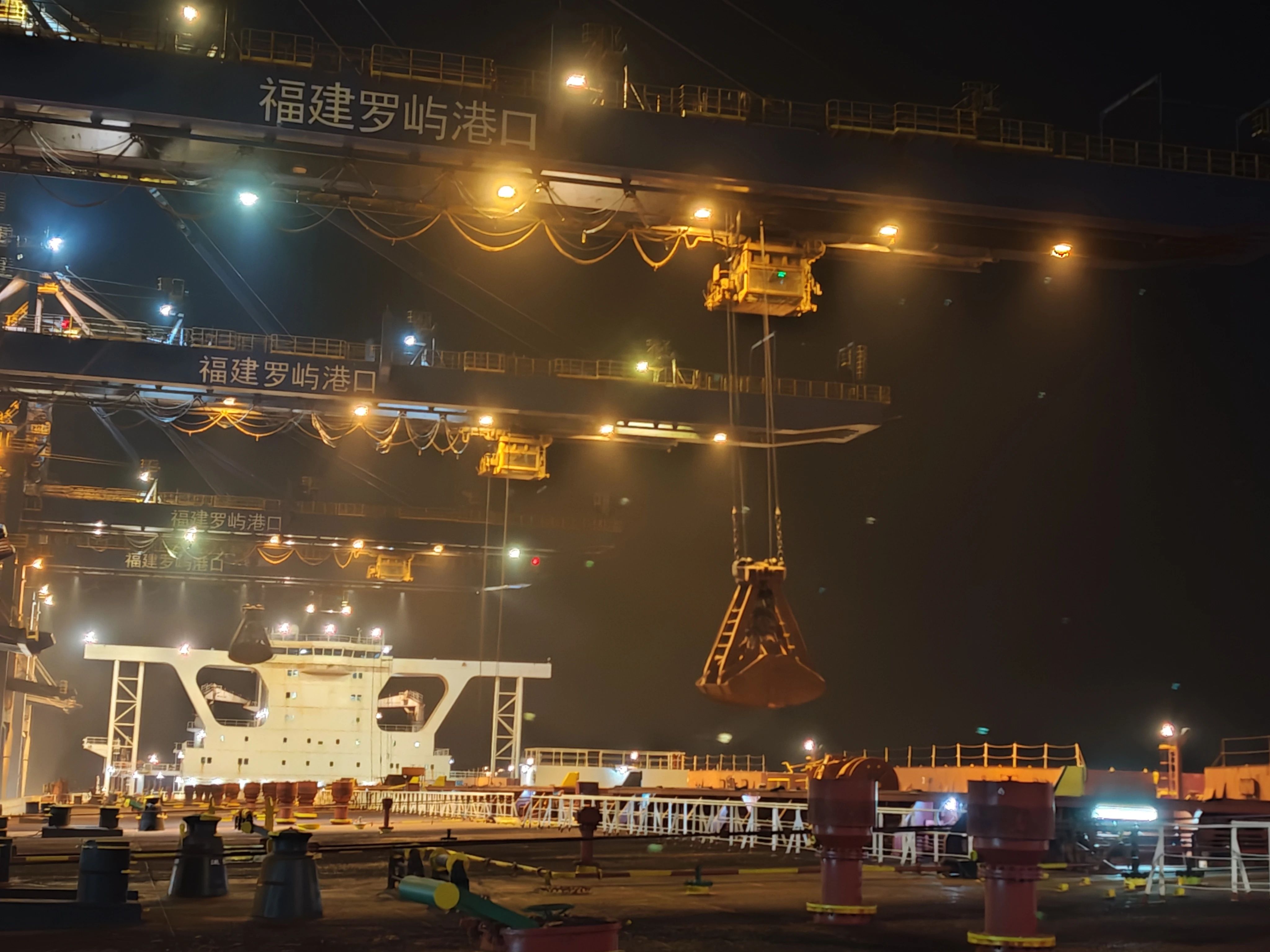 2025年新年伊始,东吴港区一片热火朝天的繁忙景象,各码头争分夺秒,各种机械整齐列阵紧张有序地进行新年“第一船”装卸作业。其中,罗屿码头更是以提升1.95%的历史新高接卸效率圆满完成了新年第一艘40万吨铁矿石船的接卸工作,为2025年高效生产拉开了新篇章。