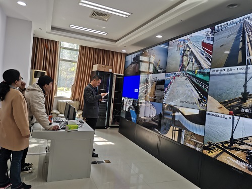 1月18日中午,省泉州港口发展中心林同钦主任和中心业务处室到中心视频监控室抽查辖区危货企业作业现场情况。林主任通过视频监控重点查看了当天经审批作业的福建龙田石化有限公司、福建南安新锦江特种油有限公司和福建中油油品仓储有限公司的码头现场。