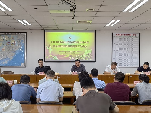 2025年5月12日,省泉州港中心党委召开2025年全面从严治党形势分析会暨党风廉政建设和反腐败工作会议。中心党委书记、主任陈华清主持会议并讲话,中心领导班子成员,纪委委员,泉州港执法支队、直属各单位、机关各处室负责人和各党支部委员参加会议。
