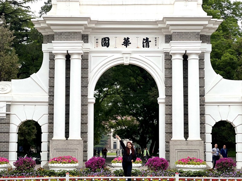 2023年5月12日,吉尔吉斯斯坦留学生安逸在清华大学留影。新华社发