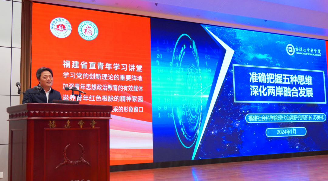 “要全面贯彻新时代党解决台湾问题的总体方略,为推动两岸共创中华民族绵长福祉、共享民族复兴伟大荣光作出福建新探索、发挥福建新贡献!”福建社会科学院现代台湾研究所所长、研究员苏美祥作《准确把握五种思维 深化两岸融合发展》主旨报告,深入解读推动福建在两岸融合发展示范区建设中的使命担当和实践路径。