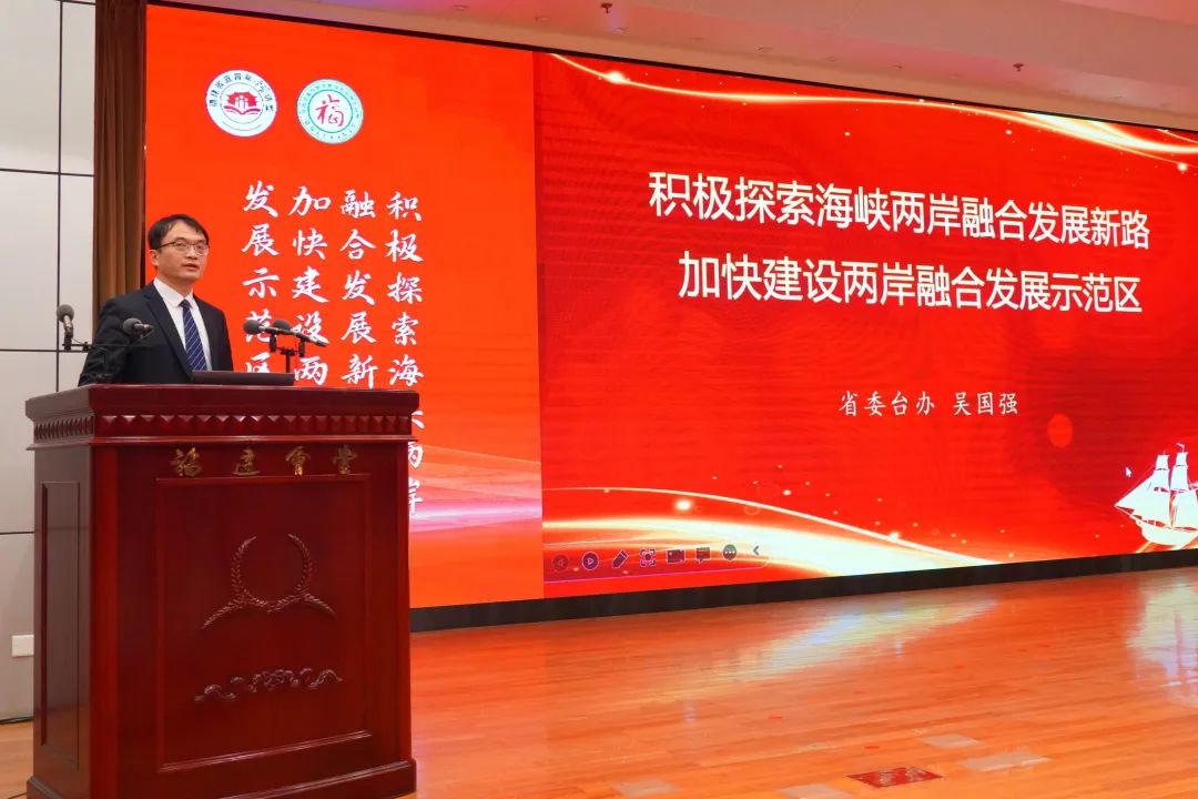 省委台办吴国强就“为什么决定建设两岸融合发展示范区?为什么在福建建设两岸融合发展示范区?要建设什么样的融合发展示范区?”等三个问题与大家进行交流,分享了关于建设两岸融合发展示范区的工作思考。