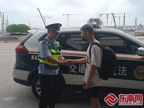 9月29日中秋国庆假期首日,福州高速机场路车流量激增,福州高速执法支队二大队加强重要时段、重点所站执法保障。上午11时30分,二大队执法员巡查至机场高速公路A43K处(福州市区往长乐机场方向,江朱枢纽互通附近)发现一部小车停靠路边,执法员立即上前询问情况,驾驶员称车辆故障已报警,中队人员随即指挥驾乘人员站在护栏外安全区域等候救援,此时发现一名随乘人员表情十分焦急,经了解得知该随乘人员是福州在校大学生,今天要赶13点的飞机回家过节,而且在路上发现身份证丢失,现在又遇上网约车故障,其他航班都已满载,情绪很低落,准备告知家人不能回去过中秋节了。