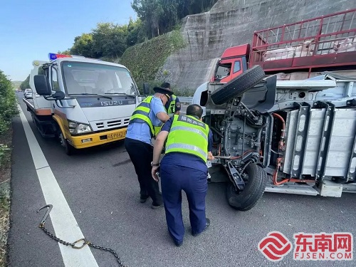 9月30日下午,福州高速执法支队三大队祥谦中队接警称,福州绕城高速BK133处,发生一起货车侧翻,小车追尾侧翻货车事故,事故造成路面车辆滞留。