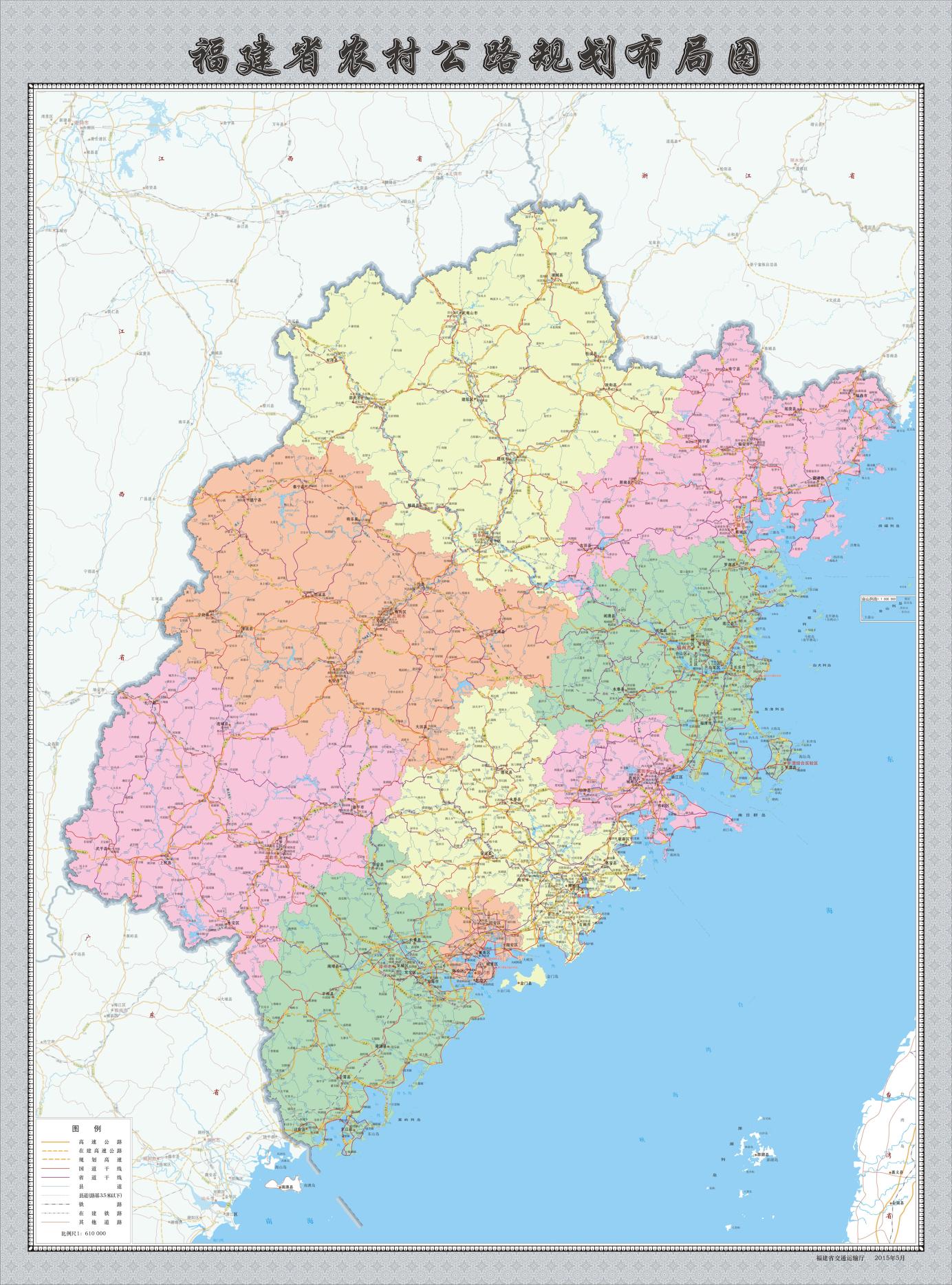 农村公路规划布局方案,是在省政府批准的《海峡西岸经济区高速公路网布局规划(修编)(2008-2020年)》(“三纵八横三十三联”)和《福建省普通国省干线公路网布局规划(2012~2030年)》(“八纵十一横十五联”)的基础上,各设区市重新审视农村公路的功能定位、规模结构、路网布局,对农村公路网做相应规划调整,形成新一轮农村公路网规划,省厅对各设区市农村公路网规划进行汇编。农村公路网规划划分为县道、乡道和村道三个层次,规划总里程125421公里,其中,县道规划总里程16550公里;乡道规划总里程43513公里;村道规划总里程为65358公里。