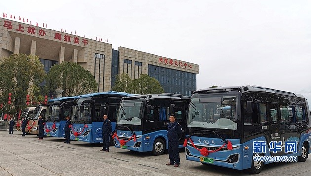 首邑公交公司新能源公交车投放仪式现场。新华网发(闽运集团 供图)