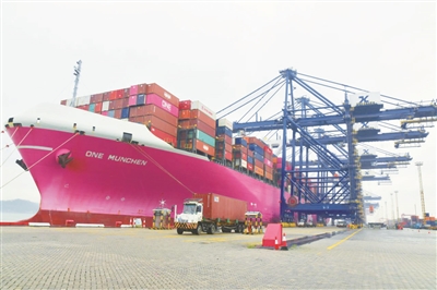据介绍,此次靠泊装卸作业量合计2362标箱,该航线主要出口货物为汽车配件、健身器具、陶瓷工艺品、家具、鞋类等,主要进口货物为牛皮、箱纸板、玻璃纤等,为货主客户提供了更多便利。