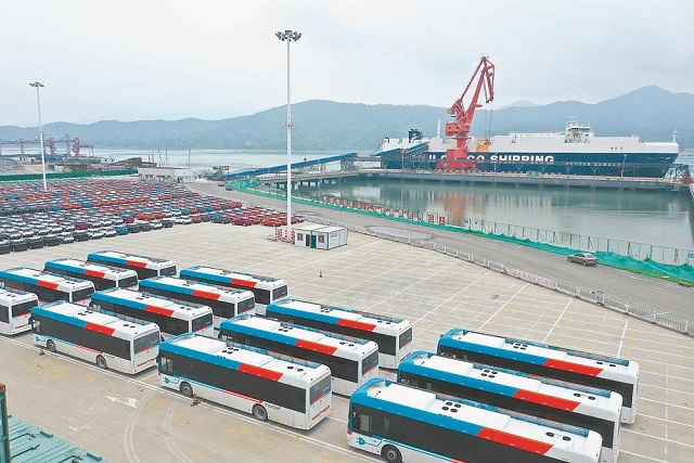 “五一”假期,1317辆外贸商品车从福州港江阴港区滚装出口,运往欧洲;5月11日,726辆电动汽车从福州港宁德三都澳港区漳湾作业区启程远行,前往以色列埃拉特港。