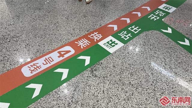 东街口站,根据地上标识来换乘(东南网记者 周霞 摄)