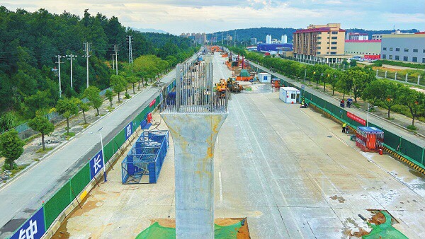 路景相融,资源节约。在福州机场第二高速公路建设项目中,潭头特大桥、文岭特大桥和湖南特大桥三个控制性工程均穿越城镇,桥下两侧设有辅路。为此,项目在桥梁下部结构的设计中采用了大悬臂梁预应力盖梁,不仅极大提高了桥梁整体的景观效果,与周边城镇景观相互融合,还充分利用了桥下空间,节约项目建设用地。