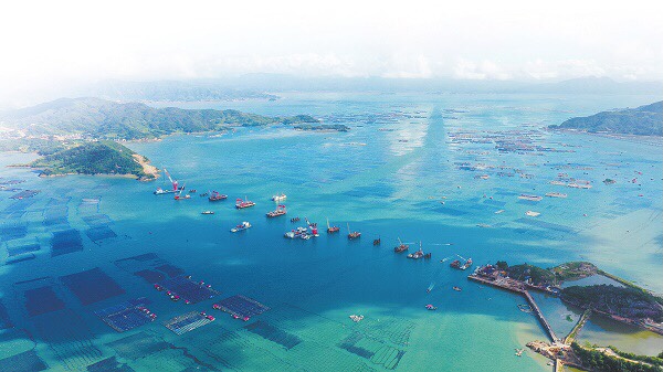 记者在宁上高速公路东吾洋特大桥施工现场看到,几十根巨大的主墩桩基已经打好,矗立在东吾洋面。桥址周边养殖密集,不远处就是大黄鱼养殖基地。