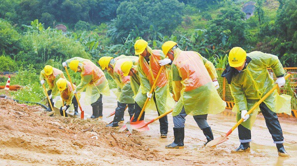 今年7月第5号台风“杜苏芮”登陆期间,宁德市洋中镇莲下村出现洪涝灾害,宁古高速公路项目立即安排由大部分党员组成的应急抢险队伍,携带铁锹、潜水泵和水带等物资赶去救援,与当地村民共同努力,顺利疏通莲下村排水沟,在最短的时间内完成抢险任务,缓解了洪涝灾情。