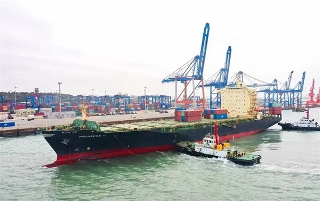“圣进”轮顺利靠泊石湖太平洋码头。