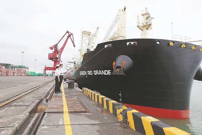 13日,中国国产全球最大77000吨多用途纸浆船“GREEN RIO GRANDE”轮在厦门海沧港区远海码头卸载1376件框架箱后,安全靠泊厦门东渡港区现代码头,预计完成15300吨纸浆板卸载后,于14日驶离厦门港。