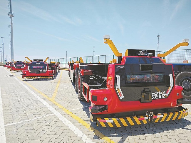 泉州集装箱码头新到岗的DCV(电动无人集装箱卡车)(叶谋成 摄)