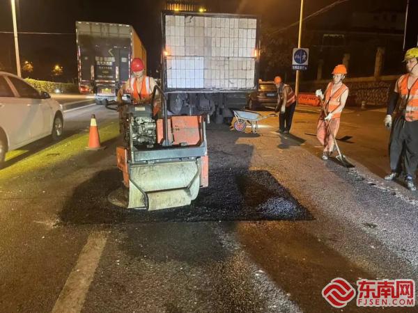 修复工作主要选择在夜间车流量较少的时段进行,以最大限度减少对交通的影响。施工现场设置了明显的警示标志,提醒过往车辆注意安全。