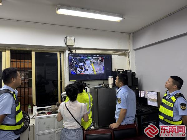 执法人员帮助旅客倒查周边监控(厦门交通执法支队 供图)