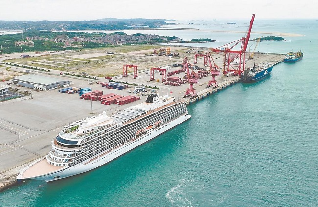 本报讯(记者 张哲昊 郭雅莹) 14日,平潭港区首次迎来境内邮轮航线。本次航线由中国籍豪华邮轮“招商伊敦号”执行,从上海启航,共计8个航次,陆续停靠舟山、温州、平潭、厦门,最后于深圳离港。这是业内首条串联中国沿海目的地,并以深度体验当地人文特色为亮点的沿海邮轮旅游航线。