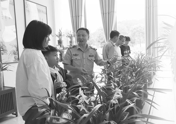 贡川服务区工作人员为旅客介绍兰花。(陈凌 供图)