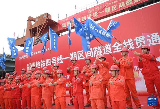 当日,福州地铁四号线一期区间隧道全线贯通仪式在该线金牛山站举行。