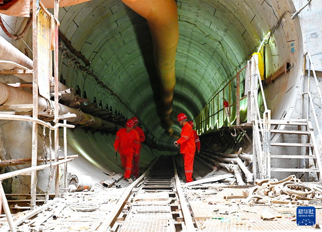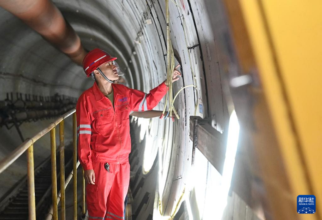 10月24日,施工人员在福州地铁四号线一期区间隧道内检查。(新华社记者 林善传 摄)