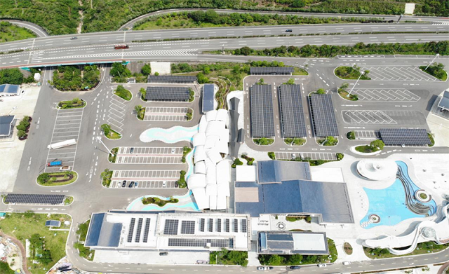 随着高速公路新能源车流量快速增长,激增的电力需求既是挑战,也成为服务区推进绿色转型的机遇。福建高速把光伏发电作为能源结构转型的重要抓手,因地制宜利用收费站、高速服务区屋顶等资源,大力推进光伏建设,打造交能融合新模式,助推绿色低碳经济发展。今年5月份,福建省高速公路青云山服务区分布式光伏电站正式并网投营,这是福建高速首个装机容量超800千瓦的光伏电站,也是已投营光伏电站中装机容量最大的项目。