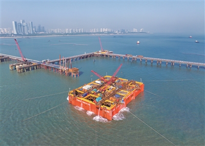 1月2日,中交二航局参建的厦金大桥(厦门段)刘五店航道桥西锚碇首个沉井成功扎根深海、沉放到位。