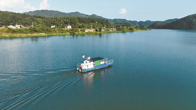 邵武市卫闽镇谢坊渡口水域行驶的新能源渡船
