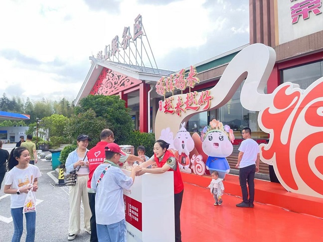 宁德东狮山服务区,旅客在“福往福来,越来越好”主题打卡区留念