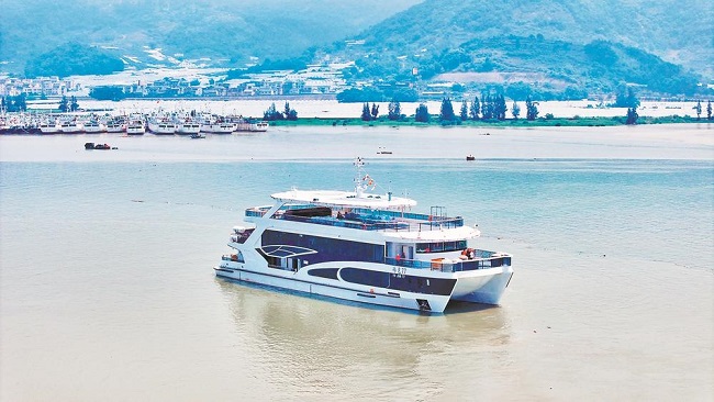 5月27日,在福安市福宁重工船坞,国内首艘纯电动海上旅游客船“屿见77”轮首次试航,此次试航重点验证船舶设备在真实情况下的匹配性与稳定性。“屿见77”轮是国内首艘纯电动海上旅游客船,也是首艘入级中国船级社的纯电动海上客船,被列入福建省电动船舶示范项目。该船总长49米,型宽14.5米,型深4.15米,额定载客358人,采用纯电池动力系统,最大航速20公里/小时,续航里程达45海里,兼具海上休闲娱乐、游览观光、会议和餐饮功能。