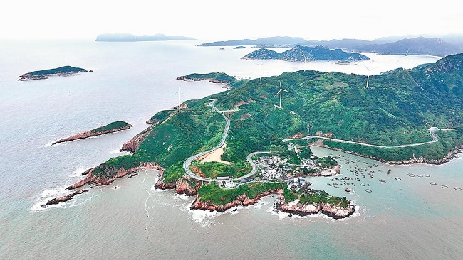 5月29日,俯瞰宁德市霞浦县“东海1号”风景观光道,大海、岛礁、沙滩和道路相映成趣。近年来,霞浦县依托独特的自然资源与优美海岸线景观,聚焦滨海旅游发展,推动 “旅游+摄影、民宿、文体、露营”多元业态深度融合,全力打造国家文化产业和旅游产业融合发展示范区。