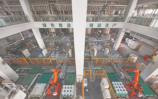 “有别于传统化工生产环境,这个园区临港而起,做到原料全封闭运输,打造无污染、清洁化、可视化生产车间。”三棵树福建工厂总经理洪广表示,同时采用自动化设备,让整个流水线的效能提升40%,不仅节省人力,而且增加投料的准确性,确保每一罐乳胶漆都有相同的品质。