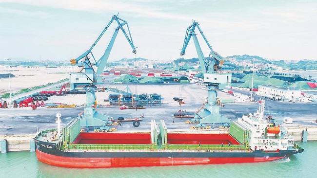 6月23日,莆田秀屿港区莆头作业区2号泊位,巴拿马籍“福芝/FU ZHI”轮缓缓抵港。岸边堆场上,吊机将一个个直径达3.5米的巨型矿卡轮胎装上拖车,再由门机精准“码”入船舱。本次共装载198个巨型轮胎,由莆头港北上,途经上海、韩国,抵达俄罗斯纳霍德卡港。这是莆田港口首次直接出口巨型轮胎。据悉,这些巨型轮胎来自仙游经济开发区的海安橡胶公司,其所生产的巨型全钢子午线工程轮胎产量位居全球第四、国内第一。