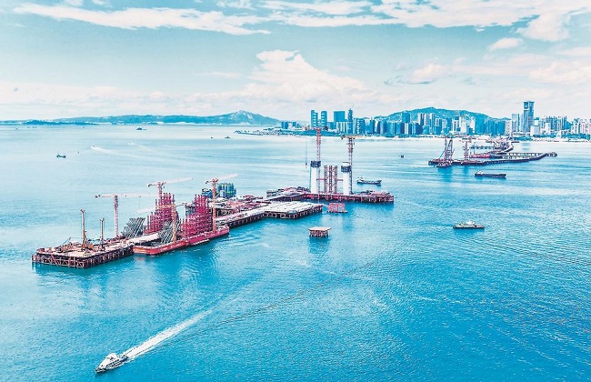 清晨,刘五店海域的朝阳映照在178米高的塔吊上,工人在30米高空挥动焊枪;地下28米处,“厦金号”盾构机操作员紧盯屏幕,隧道壁上的环片在液压推进中严丝合缝;巡逻艇穿梭于墩台运输船间……