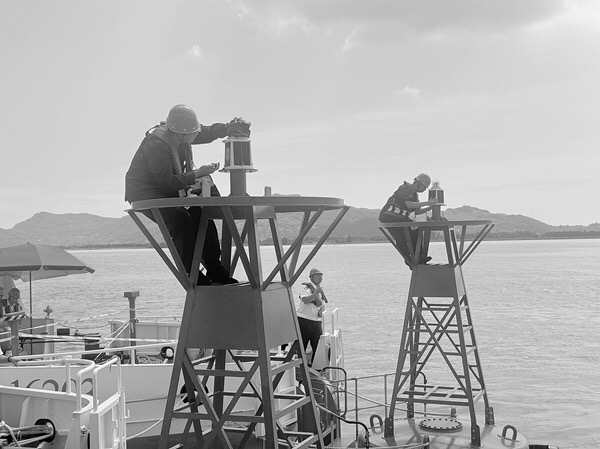 灯浮标配套安装是航标工的日常工作内容之一。据竞赛裁判员肖小春介绍,这次比赛项目涉及特定环境下新设航标相关器材种类的选择、灯器灯质调试、航标配套系统等实操技能,考核参赛队员对航标配布、灯器调试、能源配备、器材安装等知识的掌握程度,以及特定情况下的应急处置操作能力。