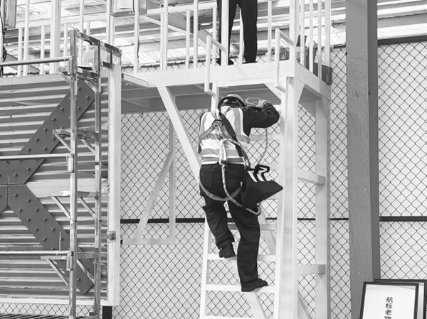 裁判员一声令下,参赛选手们迅速调整安全带,准备相关器材,挎起工具包,攀爬至作业平台,开始配电箱安装作业。这是桥涵标配电箱维护项目的比赛现场,这些外表寻常的配电箱,内部线路极为复杂,是航标灯的“心脏”。