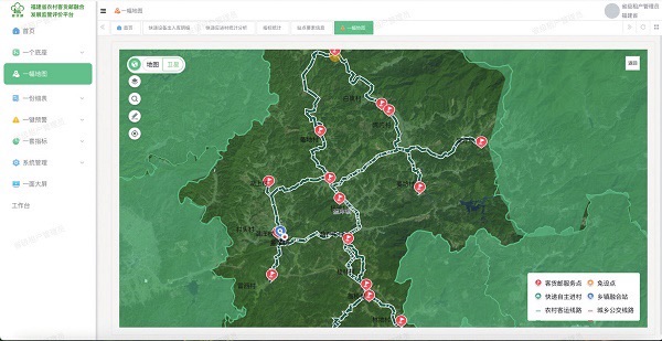 在监管评价平台上,从省到村,各级地图一目了然。所有融合服务站点在哪、路线怎么走,都清清楚楚。管理人员坐在办公室里,就能远程检查各个村点的设置是否合理、运营是否正常、有没有触发预警。正常情况下,一个县的管理员每天只需30分钟即可完成全部站点的巡视,监管效率大幅提高。