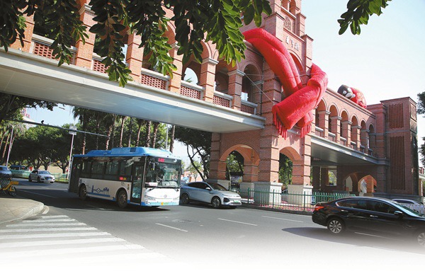 行驶在福州街头的金旅纯电动公交车。(林家锐 摄)
