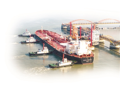 引航员引领油轮靠泊厦门港码头。