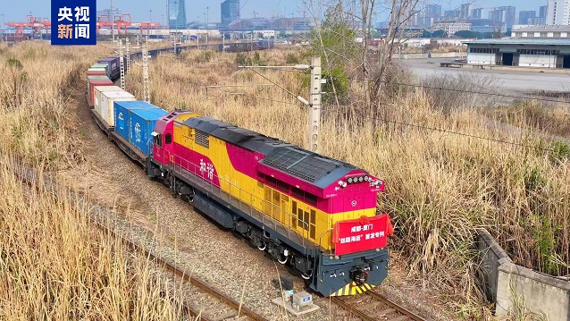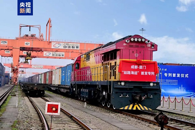 3月5日上午,成都—厦门“丝路海运”铁海联运专列从四川成都鸣笛启程,标志着成都国际铁路港再添一条联通全球的国际物流新通道,为“川货出川”注入强劲新动能。